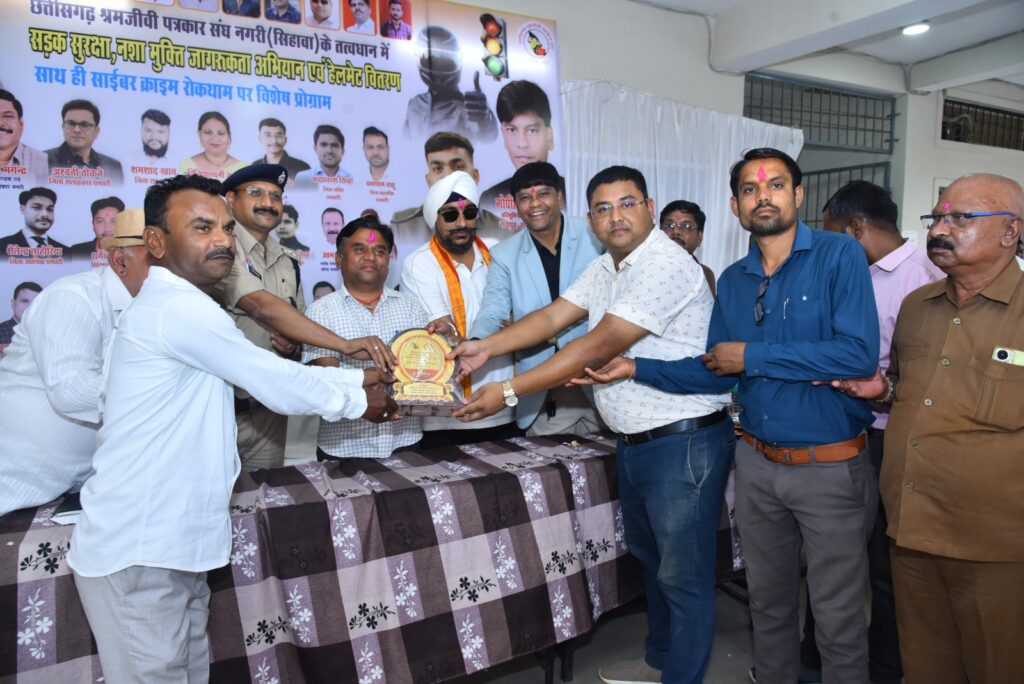 छत्तीसगढ़ श्रम जीवी पत्रकार संघ द्वारा नगरी सिहावा में सड़क सुरक्षा मंशा मुक्ति व साइबर जागरूकता के तहत निशुल्क हेलमेट वितरण कार्यक्रम सम्पन्न