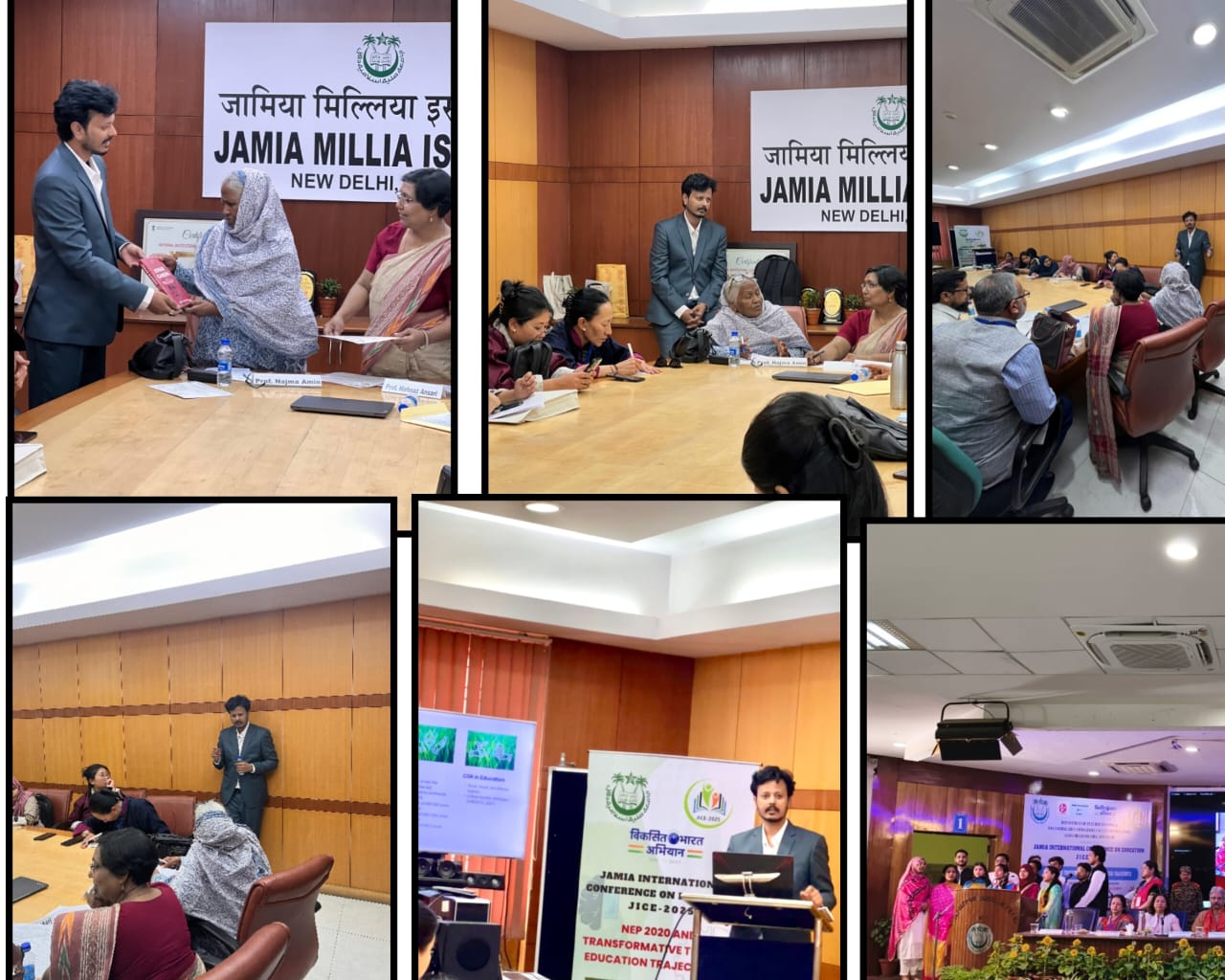 नई दिल्ली/जामिया विश्वविद्यालय, नई दिल्ली के शिक्षक प्रशिक्षण एवं शिक्षा विभाग द्वारा आयोजित जामिया अंतर्राष्ट्रीय शिक्षा सम्मेलन (JICE-2025) में प्रतिष्ठित लेखक, फिल्मकार अमीर हाशमी ने “शिक्षक प्रशिक्षण कार्यक्रम में विविधता लाने में कॉरपोरेट सामाजिक दायित्व (CSR) की संचार रणनीतियाँ” विषय पर अपना रिसर्च प्रस्तुत किया। अमीर हाशमी ने अपने रिसर्च में 2022 से सतत प्रेक्षण विधि के माध्यम से छत्तीसगढ़ और झारखंड राज्यों के सुदूर ग्रामीण एवं आदिवासी क्षेत्रों में रहकर गहन अध्ययन किया, जिसके निष्कर्ष इस रिसर्च के माध्यम से साझा किए गए।