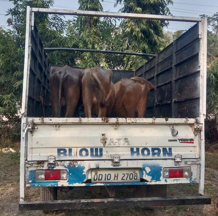मामले में पिकअप वाहन कमाक OD -10- H-2708 में 3 नग गौ वंश (पडवा) कीमती 24500/ को अवैधानिक रूप बिना सामुचित व्यवस्था के