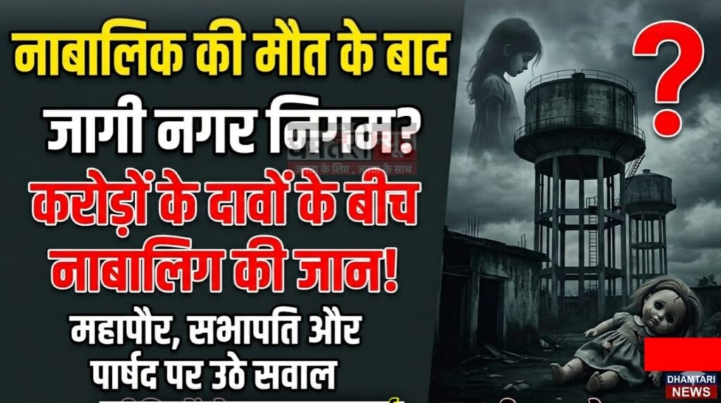 धमतरी/सुभाष नगर स्थित पानी टंकी परिसर में एक मासूम नाबालिग युवती की जान जाने के बाद अब नगर निगम प्रशासन अपनी ‘साख’ बचाने की कवायद में जुट गया है। जब हादसा हो गया और एक हंसता-खेलता परिवार उजड़ गया, तब जाकर महापौर जगदीश रामू रोहरा, जल विभाग के सभापति अखिलेश सोनकर और पार्षद श्रीमती हिमानी भगवत साहू को सुरक्षा व्यवस्था और गेट की मजबूती की याद आई है।