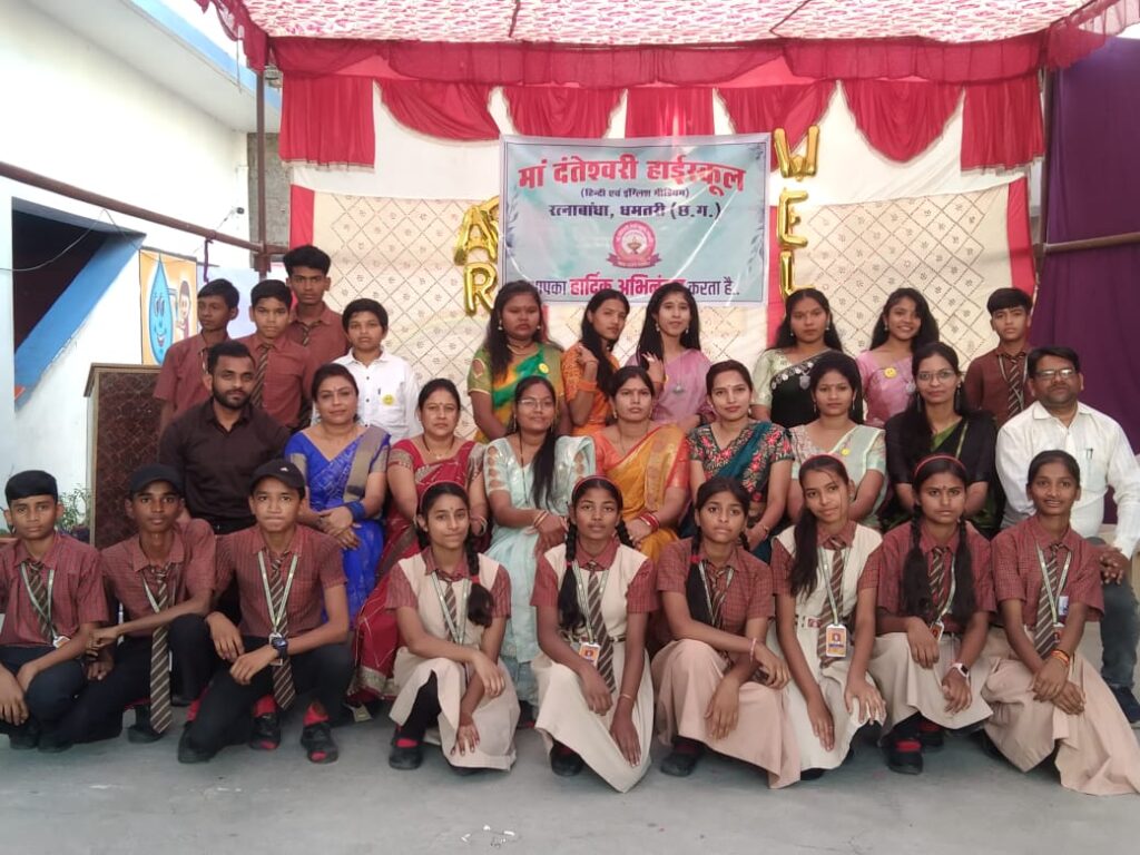 धमतरी /माँ दंतेश्वरी हाईस्कूल रत्नाबांधा, धमतरी में कक्षा 10 वीं के छात्र-छात्राओं का विदाई कार्यक्रम आयोजित किया गया। कार्यक्रम की अध्यक्षता विद्यालय की प्राचार्य श्रीमती लक्ष्मी रावटे के मार्गदर्शन में हुआ। सर्वप्रथम कार्यक्रम की शुरुआत मां सरस्वती की पूजा अर्चना के साथ किया गया। कक्षा 9 वीं के छात्र-छात्राओं के द्वारा कक्षा दसवीं के छात्र-छात्राओं को इस्माइल टैग लगाकर स्वागत किया गया।