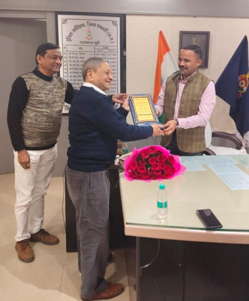 पुलिस अधीक्षक धमतरी श्री सूरज सिंह परिहार ने इस सम्मान के लिए इंडियन मेडिकल एसोसिएशन का धन्यवाद ज्ञापित करते हुए कहा कि धमतरी पुलिस जनसुरक्षा, कानून-व्यवस्था बनाए रखने तथा संगठित एवं गंभीर अपराधों पर प्रभावी नियंत्रण के लिए पूर्ण निष्ठा, तत्परता एवं प्रतिबद्धता के साथ कार्य करती रहेगी।