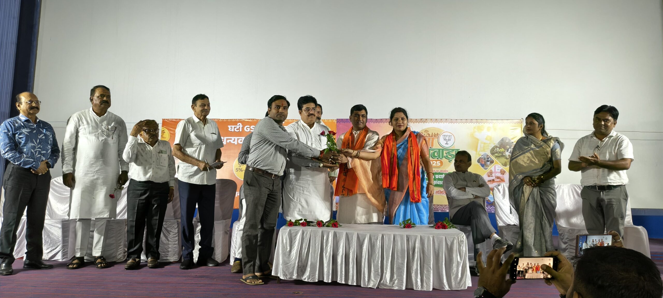 जिले के विमल टॉकीज में आयोजित प्रबुद्धजन संवाद कार्यक्रम में पधारे अतिथियों के द्वारा आमदी नगर निवासी टीकम किरण को मंच से सम्मानित किया गया