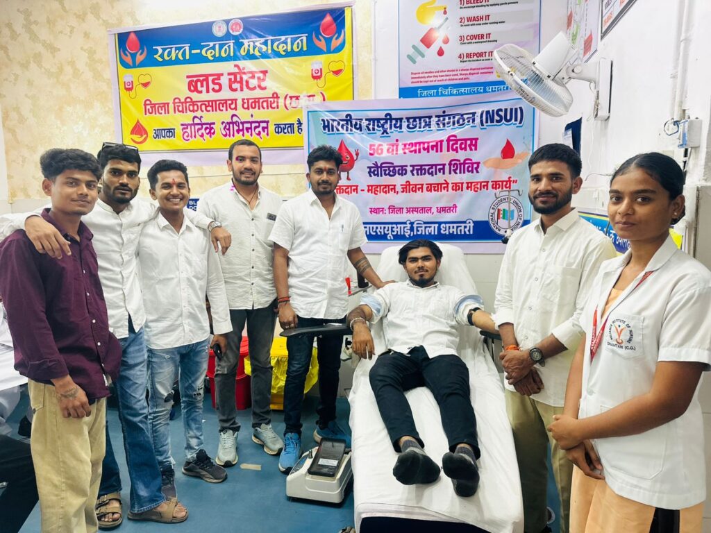 भारतीय राष्ट्रीय छात्र संगठन के 56वें स्थापना दिवस के अवसर पर धमतरी जिला एनएसयूआई द्वारा जिले की तीनों विधानसभाओं में विभिन्न जनहितकारी कार्यक्रम आयोजित किए गए।