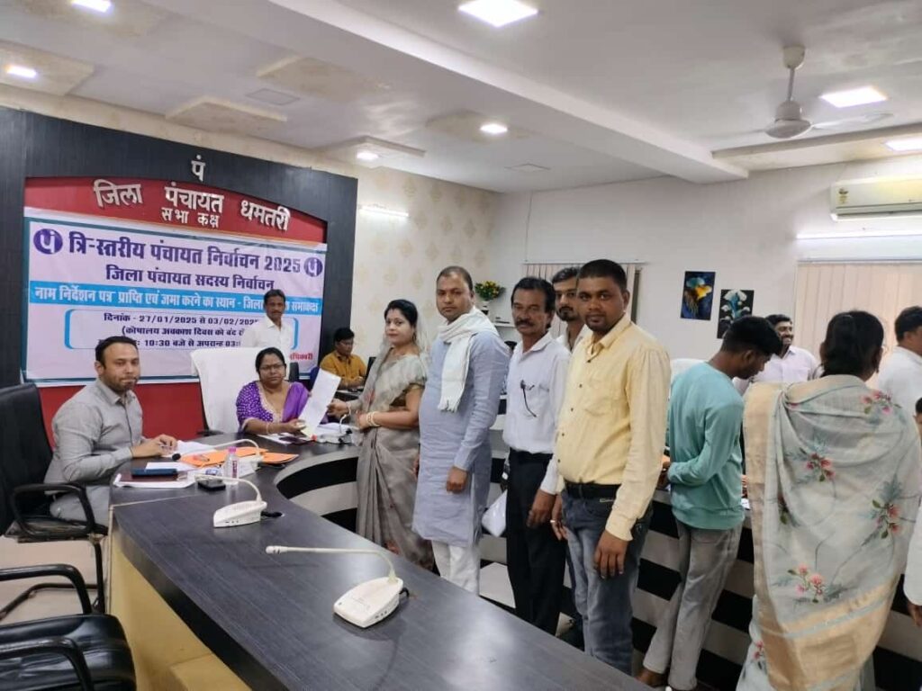 त्रि-स्तरीय पंचायत चुनाव के नामांकन खरीदने व फार्म जमा करने के अंतिम दिन तीन फरवरी को जिला पंचायत उपाध्यक्ष नीशू चन्द्राकर की अगुवाई में जिला पंचायत क्षेत्र के प्रत्याशियो ने भरा नामांकन