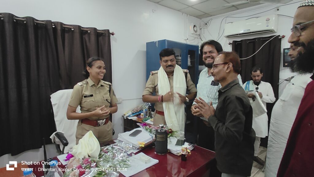 धमतरीं / शनिवार को सुन्नी यूथ विंग,छत्तीसगढ़ मुस्लिम तेली बिरादरी(ctb),अता ए गरीब नवाज कमेटी व पूरे मुस्लिम समाज की ओर से प्रशासन का सम्मान किया गया। इस सम्मान का आयोजन ईद मिलादुन्नबी के जुलूस में प्रशासन द्वारा दिए गए उत्कृष्ट सहयोग और कानून व्यवस्था को बेहतर बनाए रखने के लिए किया गया। इस मौके पर पुलिस प्रशासन के अधिकारियों को गुलदस्ता और शाल भेंट कर सम्मानित किया गया।