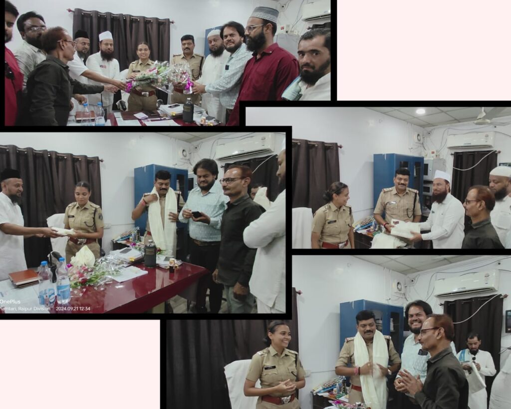 इस कार्यक्रम में विशेष रूप से डीएसपी नेहा पवार और सिटी कोतवाली प्रभारी राजेश मरइ का फूल और शाल भेंट कर सम्मान किया गया। प्रशासन के इस सहयोग से जुलूस शांतिपूर्ण और सुरक्षित तरीके से संपन्न हुआ, जिसके लिए मुस्लिम समाज ने आभार व्यक्त किया।