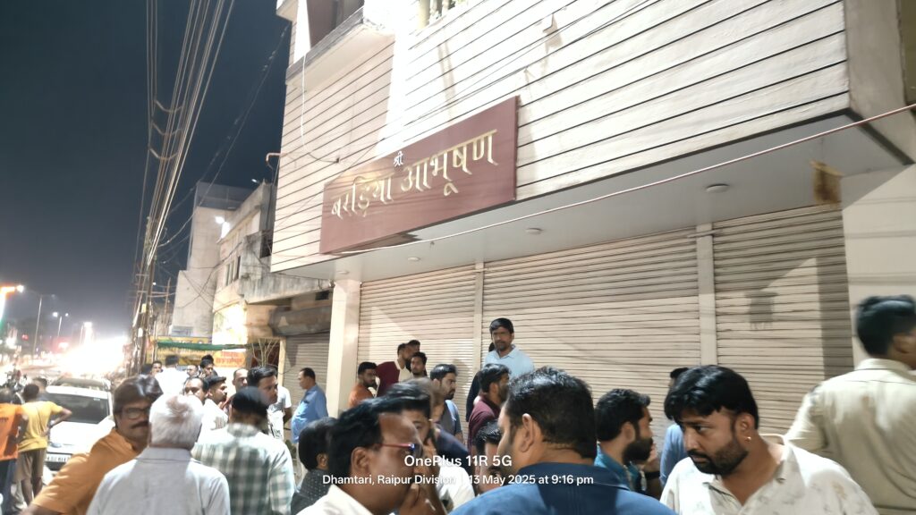धमतरी/जिले के बस स्टैंड स्थित बरडिया ज्वेलर्स में सनसनीखेज लूटपाट की घटना ने पूरे शहर को दहला दिया। दो नकाबपोश बदमाशों ने सर्राफा व्यापारी और उनकी बेटी पर हमला कर फायरिंग की, जिसमें दोनों गंभीर रूप से घायल हो गए। घटना के बाद बदमाश मौके से फरार हो गए, जबकि पुलिस के आला अधिकारी जाँच के लिए मौके पर पहुँचे। आखिर क्या थी इस लूट की साजिश? आइए, इस खबर को विस्तार से जानते हैं।