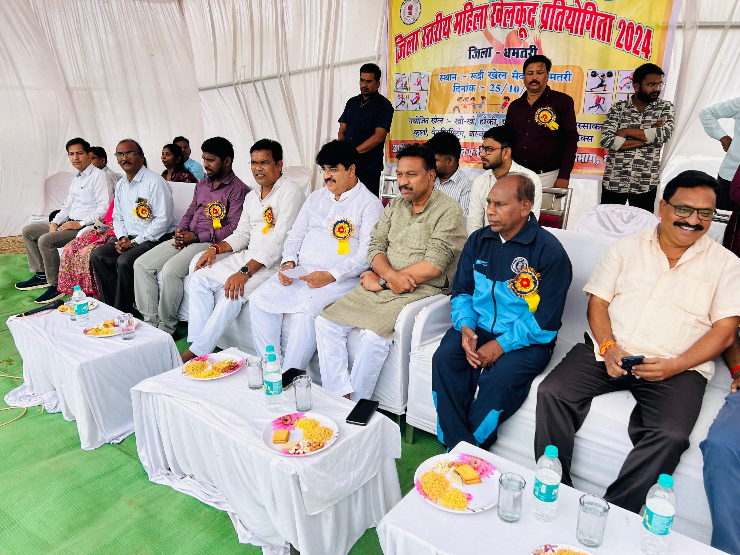धमतरी जिला स्तरीय महिला खेलकूद प्रतियोगिता का आयोजन जिला मुख्यालय के खेल मैदान रुद्री में किया गया | प्रतियोगिता का शुभारंभ धमतरी विधायक ओंकार साहू सहित उपस्थित अतिथियों ने छत्तीसगढ़ महतारी व ज्ञान दायनी माँ सरस्वती के छायाचित्र पर पूजन – अर्चन व दीपप्रज्वलित करके किया गया | रूद्री खेल मैदान में आयोजित जिला स्तरीय खेल प्रतियोगिता में जिले के चारों विकासखण्ड धमतरी, कुरुद ,नगरी व मगरलोड में आयोजित विकास खण्ड महिला खेलकूद प्रतियोगिता में प्रथम स्थान प्राप्त करने वाले 9 वर्ष से 18 वर्ष आयु वर्ग और 18 से 35 वर्ष आयु वर्ग की बालिकाएं व महिलाएं इस जिला स्तरीय खेल स्पर्धा में भाग लेने पहुंचे हुए हैं |